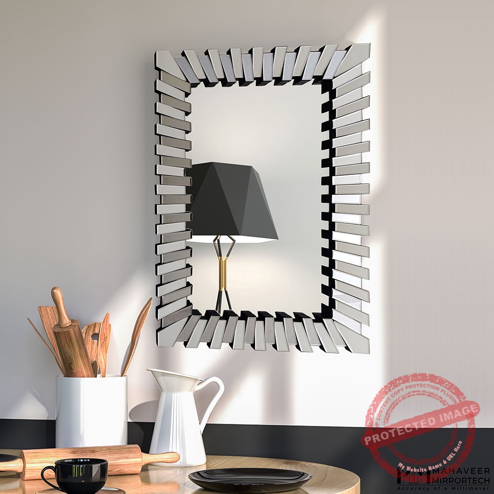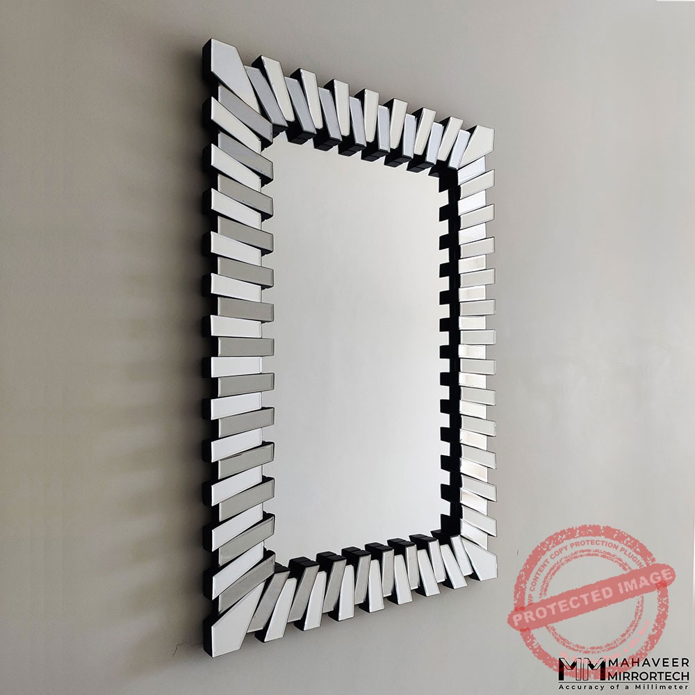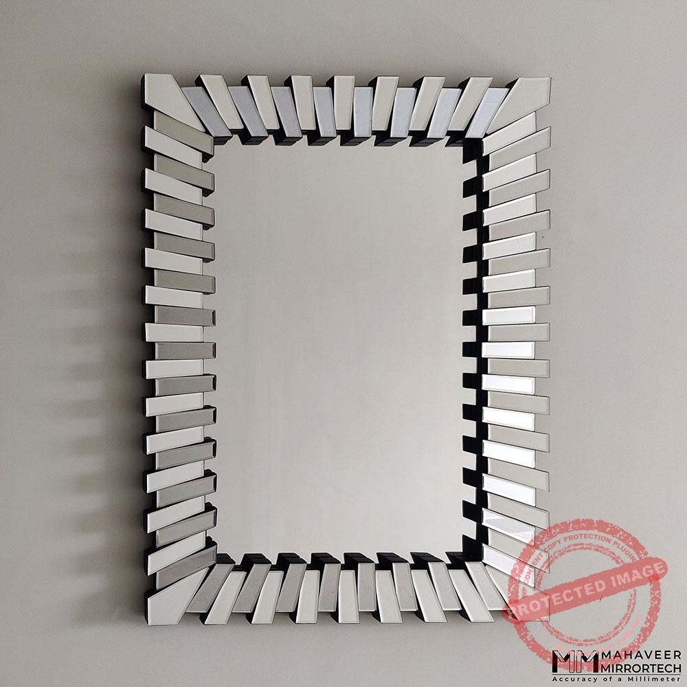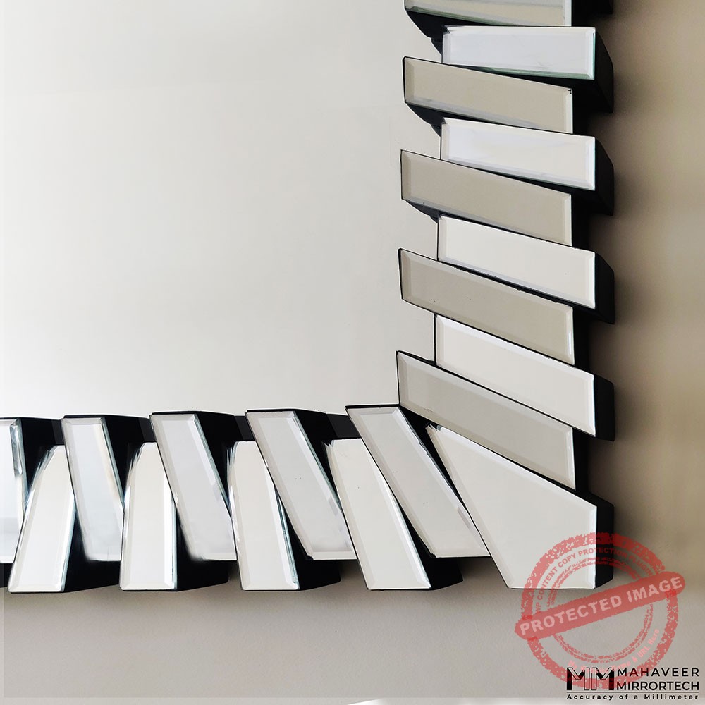 This contemporary wall mirror is entirely encased in mirrored glass, giving it a rugged and exquisite appearance at the same time. Every mirror piece has been professionally bevelled by our artisans, making the edges look smoother and brighter. When you hang the mirror in your living room, it will give off a wealthy vibe, inviting more riches into your life.